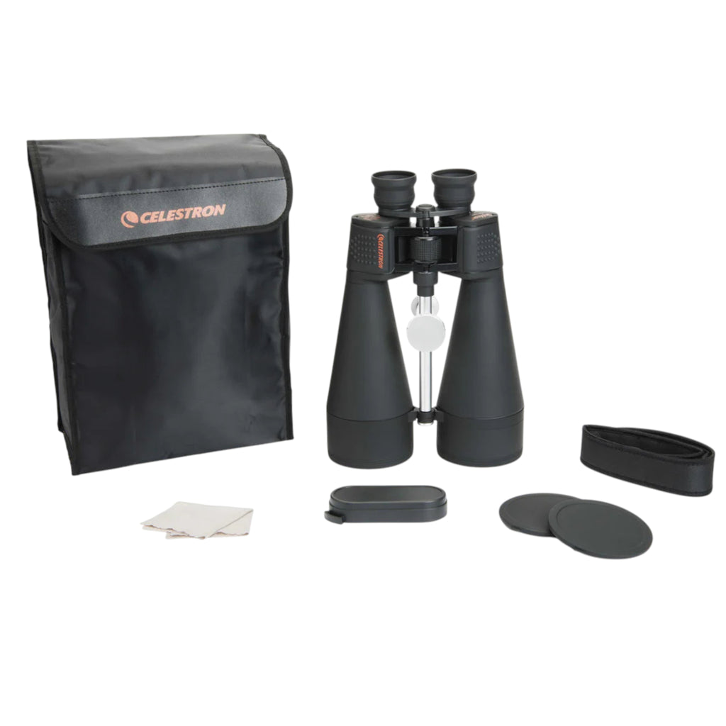 For added convenience, the SkyMaster 20x80 includes diopter compensation adjustments, along with a carrying case and strap for safe transport and storage.