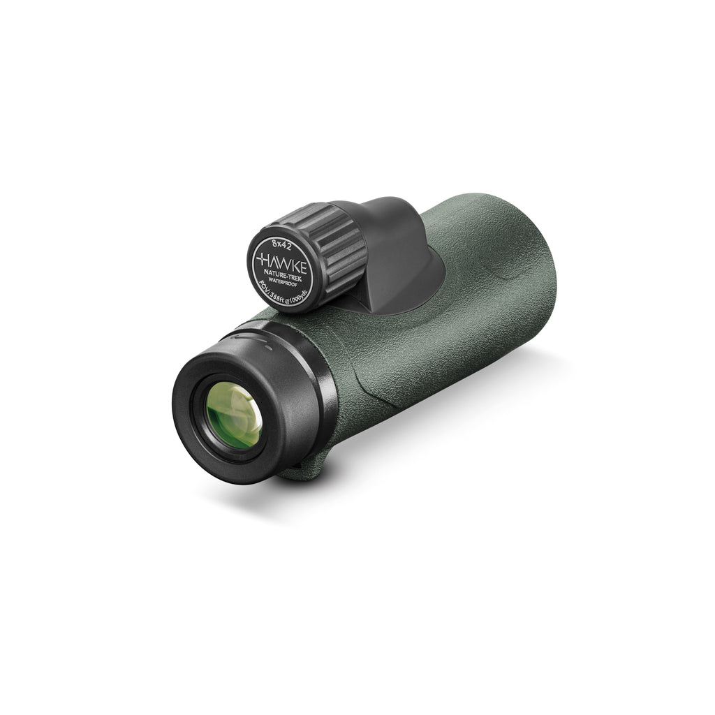 Compact and lightweight and outfitted with a powerful magnification that brings distant subjects in close for detailed observation, the green Hawke Optics 8x42 Nature-Trek Monocular features a compact phase-corrected BAK4 roof prism and anti-reflection fully multi-coated optics that work together to produce a versatile and capable optic with bright and clear color-accurate views. Its 42mm objective, coupled with the optical features and generous angle of view, makes the Nature-Trek ideally suited for most quick and casual glassing needs.