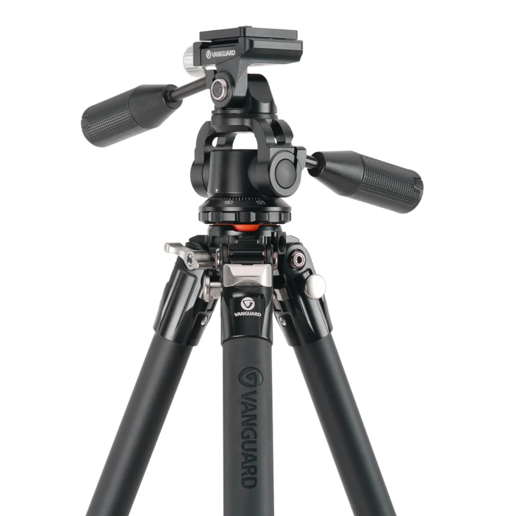 VEO 5 tripods are designed to be lightweight for easy carrying but also deliver all the great features you love about Vanguard tripods. These full-size tripods come in models with pan heads or dual-axis ball heads, which gives you the choice to adapt your gear to your needs. Retractable spiked feet help you maximize your stability on any terrain. A newly-designed hexagonal center column helps the VEO 5 fold down to a smaller diameter than ever before. When you need to get low, you can convert the center column to a short column with a few twists. Vanguard VEO 5 APS and CPS model tripods each come with an innovative three-way pan head with a spinning top handle, which features easy-to-use controls and an intuitive design, making it perfect for smooth and accurate panning while shooting photo or video (or using compatible optics). Additionally, each VEO 5 tripod includes an upscale padded shoulder bag and a quick-release plate.